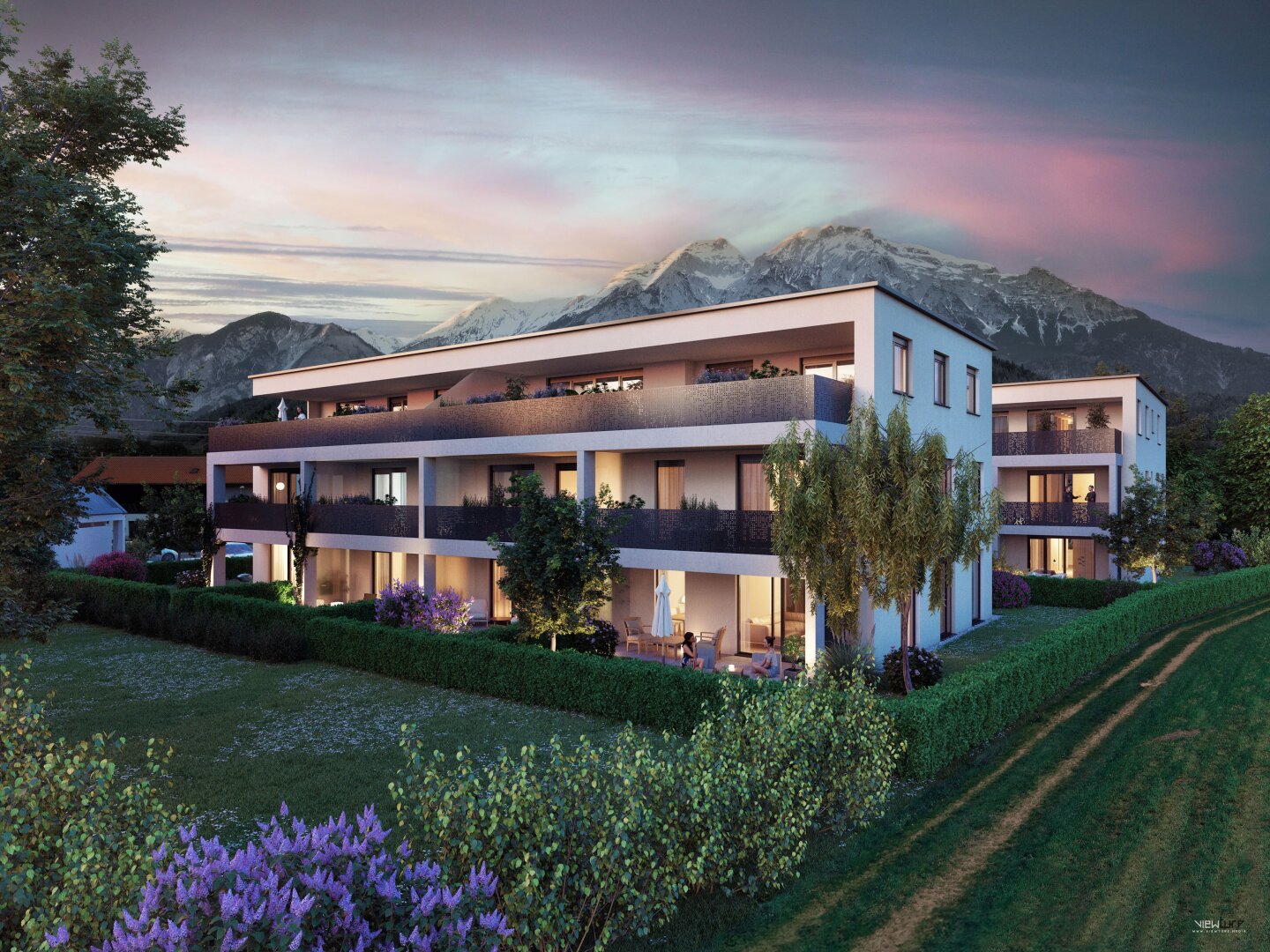 Alle Gärten, Terrassen und Balkone sind nach Südwesten – zur Sonne hin – ausgerichtet.