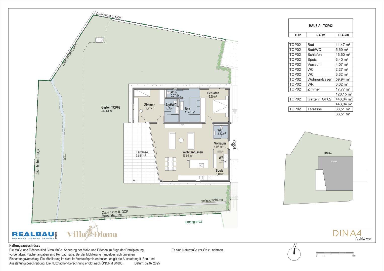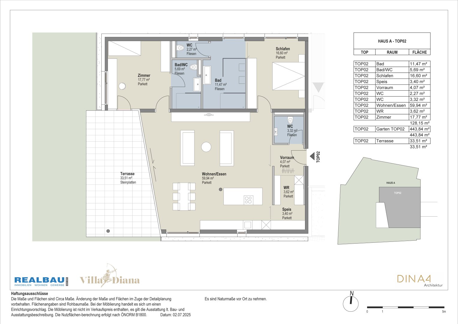 Äußerst großzügig: Im westlichen Gebäudeflügel A befindet sich, eben erreichbar, die Gartenwohnung Top 02 mit ca. 128 m² Wohnfläche. Über den Vorraum betritt man den äußerst großzügigen Wohnraum mit einem Ausmaß von knapp 60 m². Hier lässt es sich leben und wohnen!